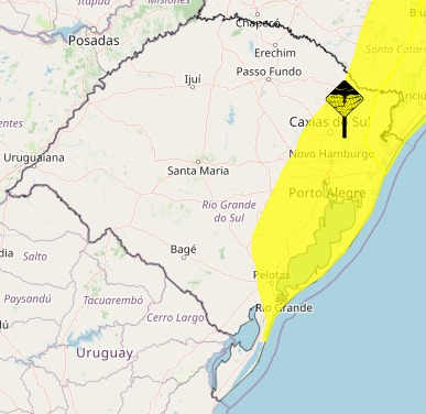 O Instituto Nacional de Meteorologia (INMET) divulgou, nesta segunda-feira (29/1) alerta de chuvas intensas para o Rio Grande do Sul. O aviso meteorológico começou a valer ao meio-dia e se estende até as 21 horas desta segunda-feira.