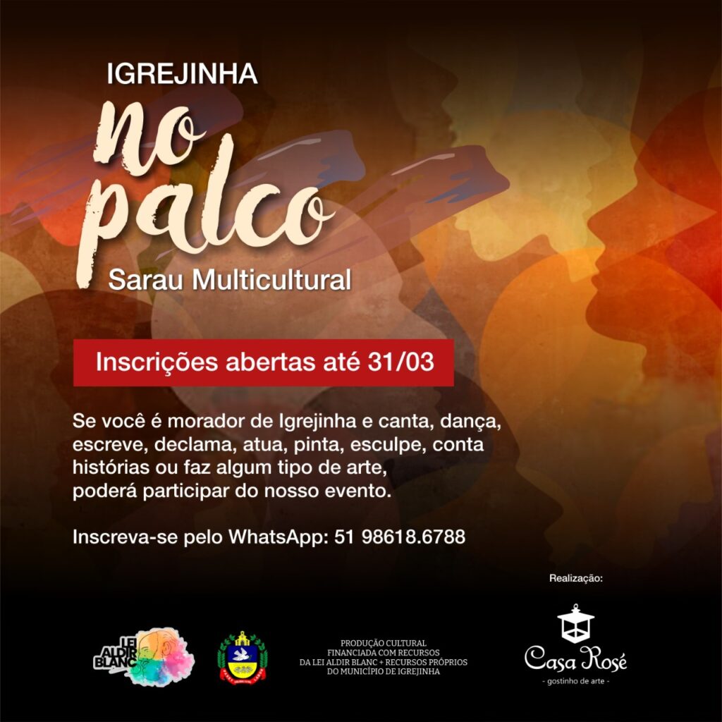 Criado com o objetivo de fomentar e valorizar a arte local, proporcionando à comunidade o deleite, acesso e contemplação a apresentações artísticas e culturais de pessoas da cidade, o “Igrejinha no Palco – Sarau Multicultural” está com suas inscrições abertas até quinta-feira (31).