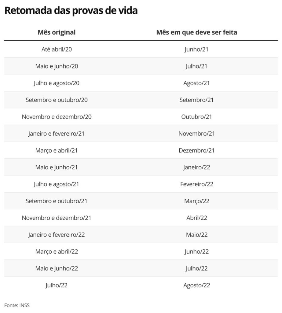 Foi publicada nesta segunda-feira (5), no Diário Oficial da União, a Portaria que prorroga o calendário de prova de vida até agosto de 2022. Os prazos para 2021 seguem os mesmos e é importante que a pessoa fique atenta para realizar a prova de vida seguindo o calendário.