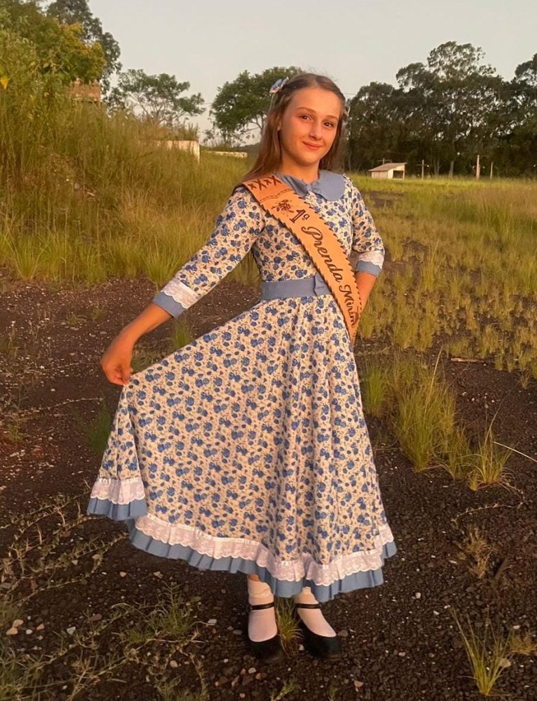 Aluna do 7º ano da Escola Municipal de Ensino Fundamental Idalino Pedro da Silva, de Parobé, Isabeli carrega com orgulho a responsabilidade de representar sua região como 1ª Prenda Mirim da 22ªRT e também o CTG Querência Azaleia. Ela explica que a caminhada no tradicionalismo começou cedo. “Entrei no CTG aos 3 anos por influência da minha mãe. Aos 4 anos iniciei minha trajetória no departamento cultural, onde concorri pela primeira vez como bonequinha de galpão da minha entidade”, relembra.