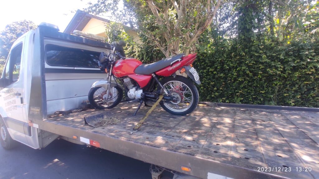 Enquanto executavam ações de abordagem no bairro, com o objetivo de coibir o tráfico naquele local, os policiais militares avistaram a motocicleta denunciada na Rua Reinoldo Jaeger, nas proximidades de um beco, e seu condutor, ao avistar a viatura, aumentou a velocidade do veículo, sendo abordado logo em seguida.