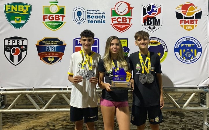 Os jovens atletas de Taquara, Rodrigo Raymundo (12 anos), Felipe Guinarte Kuhn (13) e Martina Beneditto Zimmer (14) representaram o Rio Grande do Sul no Campeonato Brasileiro de Beach Tennis CBBT 2024, realizado de 20 a 24 de novembro, na Praia de Camburi, em Vitória, Espírito Santo.