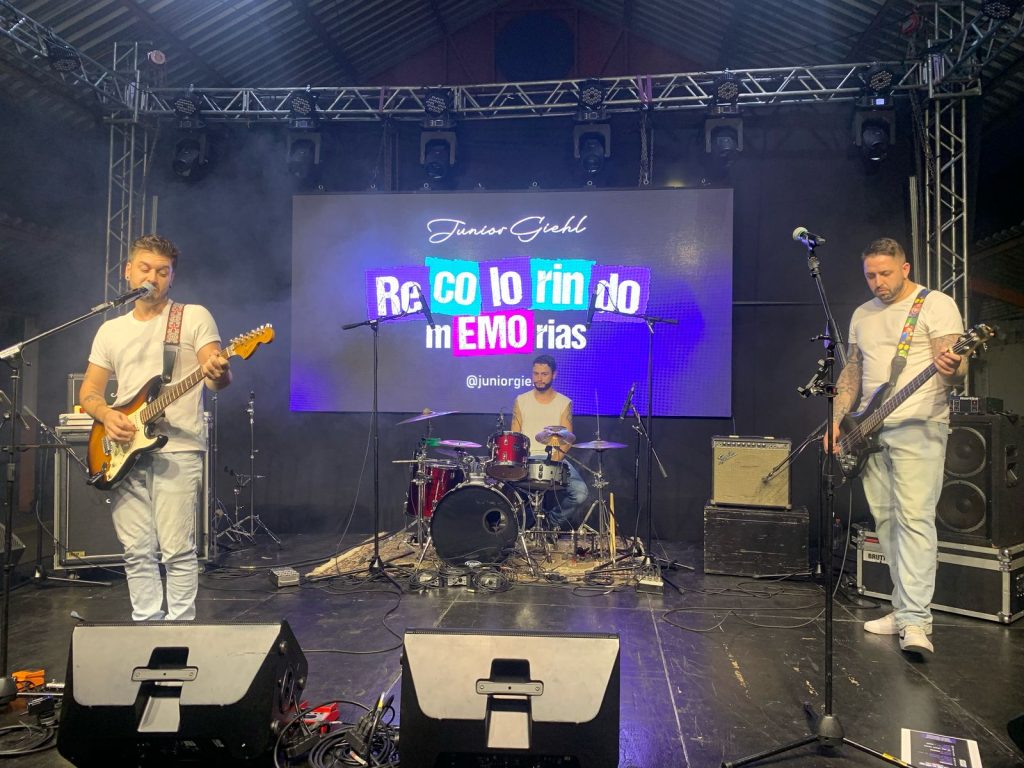 Durante a apresentação, Júnior Giehl mostrou ao público um repertório que mescla canções próprias e interpretações, refletindo sua trajetória musical, que começou na infância, influenciada pelo convívio com o pai, também músico. “Cresci acompanhando bandas, ouvindo muita música, foi algo inevitável para mim”, relatou o artista.