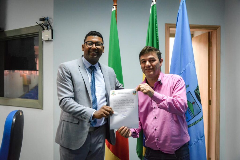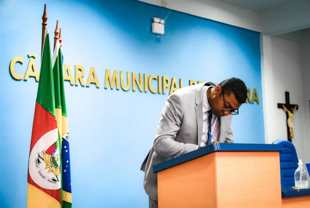 Na manhã desta quarta-feira (21), o presidente da Câmara de Vereadores de Taquara, vereador Jorginho (Progressistas), empossou o segundo suplente do Partido Social Democrático (PSD), Jussiê Alberto Teixeira.