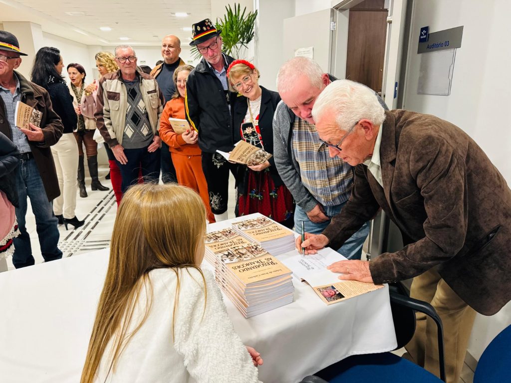 Na noite desta quinta-feira (22), o auditório 3 do Centro de Eventos da Faccat foi palco de um momento marcante para a preservação da cultura local: o lançamento do livro “Resgatando as Tradições”, de Telmo de Jesus Carlotto. A obra, que não tem fins lucrativos, é fruto de anos de pesquisa e dedicação, e terá os 700 exemplares impressos distribuídos gratuitamente para escolas, bibliotecas e instituições da região, com o objetivo de servir como material de pesquisa para a comunidade.
