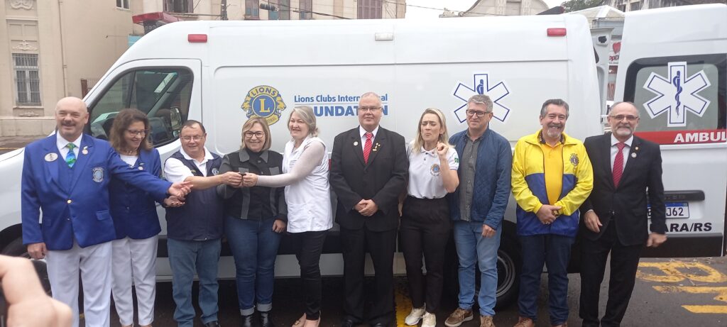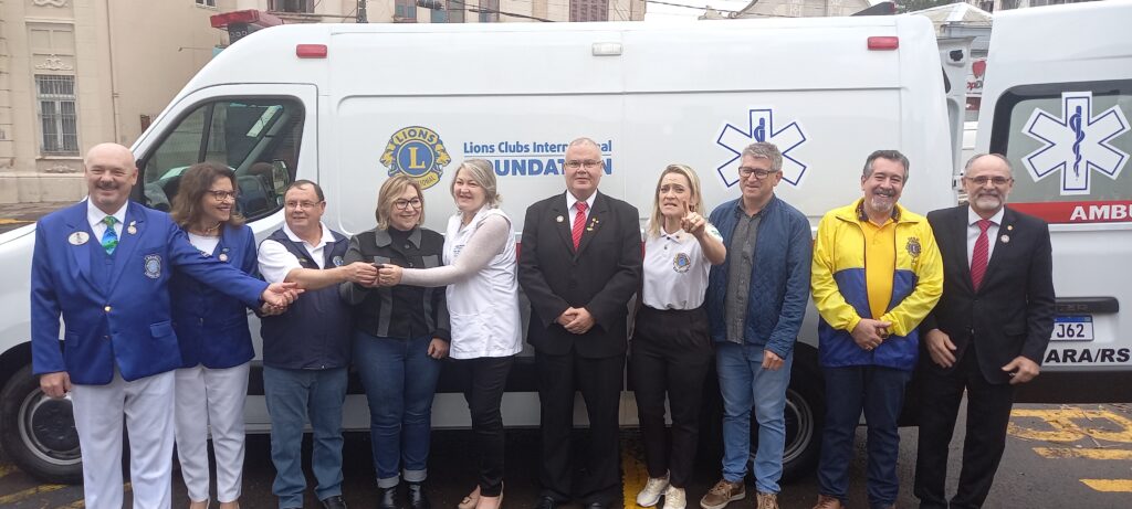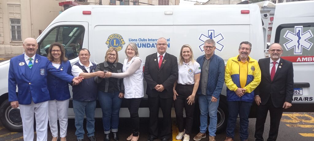 A parceria instaurada em 2021 entre a Prefeitura de Taquara e o Lions Club International Foundation teve seu ápice neste sábado (23) com a entrega de uma ambulância do tipo UTI móvel de suporte avançado zero quilômetro para o Samu. O veículo teve investimento de R$ 288 mil do clube de serviço e contrapartida de R$ 100 mil da administração municipal e da Câmara de Vereadores.