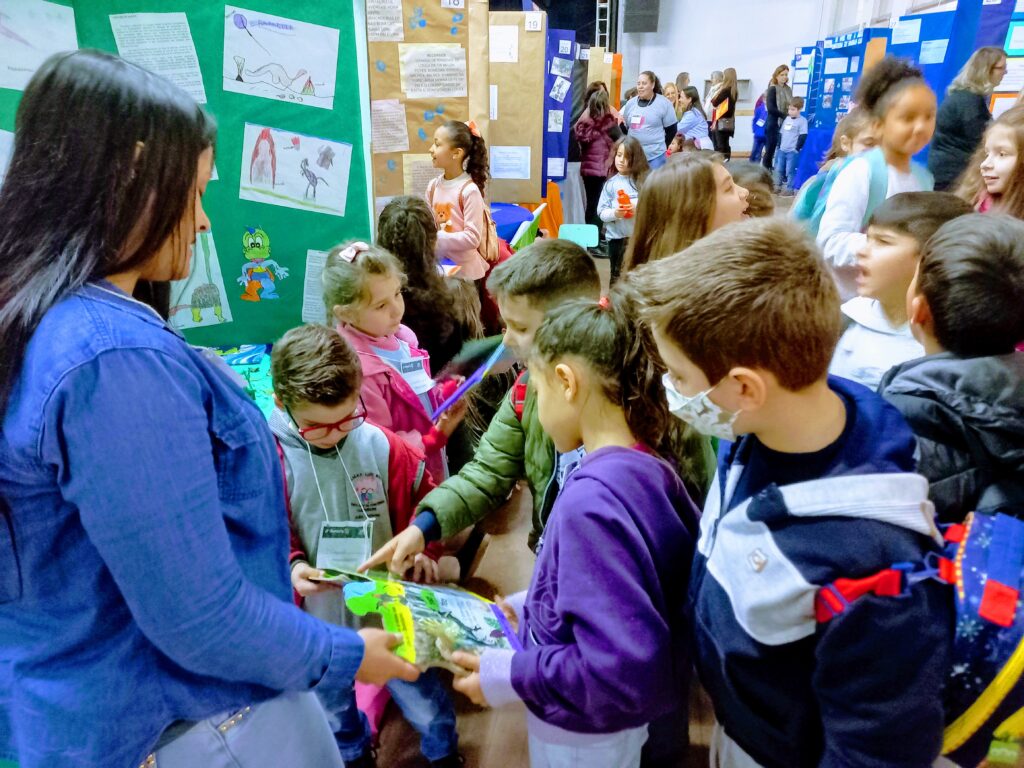“O evento está maravilhoso, poder ver as crianças desenvolvendo trabalhos autorais e os professores orientando todo este protagonismo dos nossos pequenos nos enche de orgulho”, observa a coordenadora pedagógica da EMEI Algodão Doce, de Parobé, Vanessa Skorek Feiten, avaliadora das categorias Educação Infantil e Ensino Fundamental.
