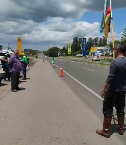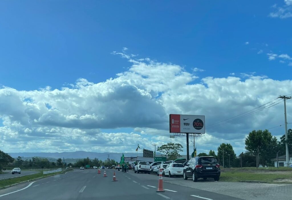Conforme o Pelotão da Polícia Rodoviária de Taquara, o grupo está concentrado às margens da rodovia, munido de bandeiras do Brasil e do Rio Grande do Sul, sem bloquear o trânsito.