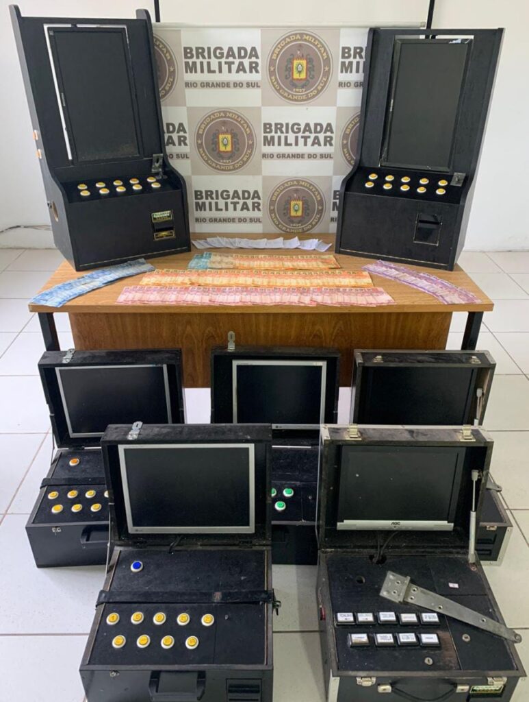 Conforme a Brigada Militar (BM), no local foram apreendidas sete máquinas caça-níquel, além de uma quantia em dinheiro, e registrado uma ocorrência de jogos de azar, onde uma mulher, de 74 anos, foi qualificada como autora da contravenção.