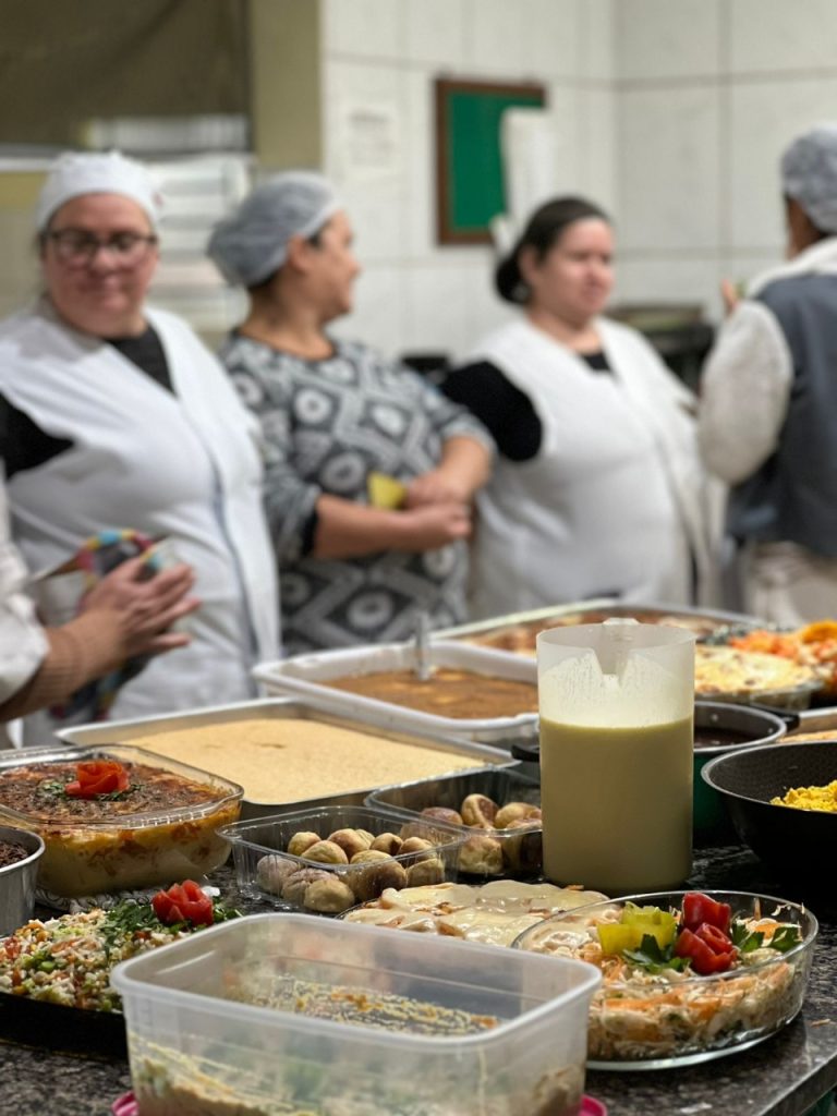 A atividade, que aconteceu na cozinha da EMEF Idalino Pedro da Silva, no bairro Guarujá, foi dividida em dois turnos — manhã e tarde — e teve como proposta o compartilhamento de receitas das memórias afetivas das participantes, todas elaboradas com ingredientes disponíveis no rol da merenda escolar do município.