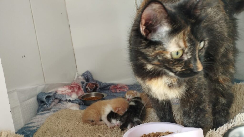 Até que sejam adotados, a gata e seus quatro filhotes ficarão em um lar temporário voluntário. Já os machos seguem temporariamente na clínica veterinária.