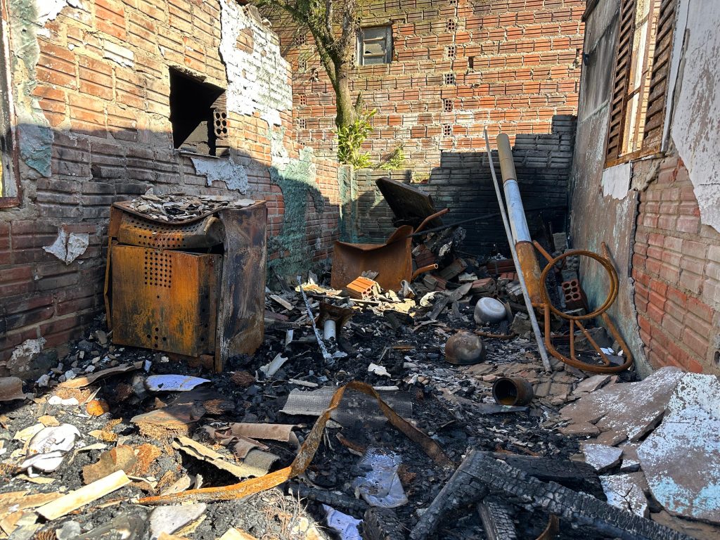 A resposta do Corpo de Bombeiros Militar de Taquara foi imediata, mas o incêndio devastou a estrutura e os móveis da casa. A moradora vive o drama de reconstruir o que o fogo levou.