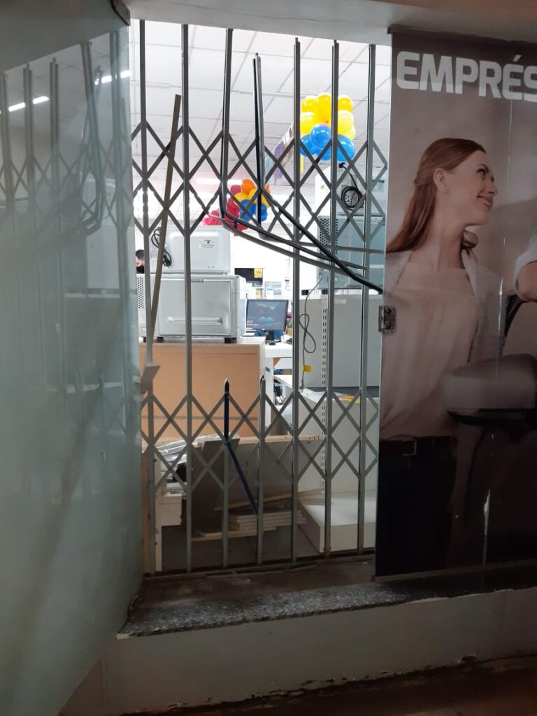 Chegando ao local, os policiais encontraram um automóvel Fiat Palio, com placas de Porto Alegre, aberto e, dentro dele, havia um alicate de cortar barras de ferro. Logo em seguida, foi constatado que a porta lateral da loja estava aberta.