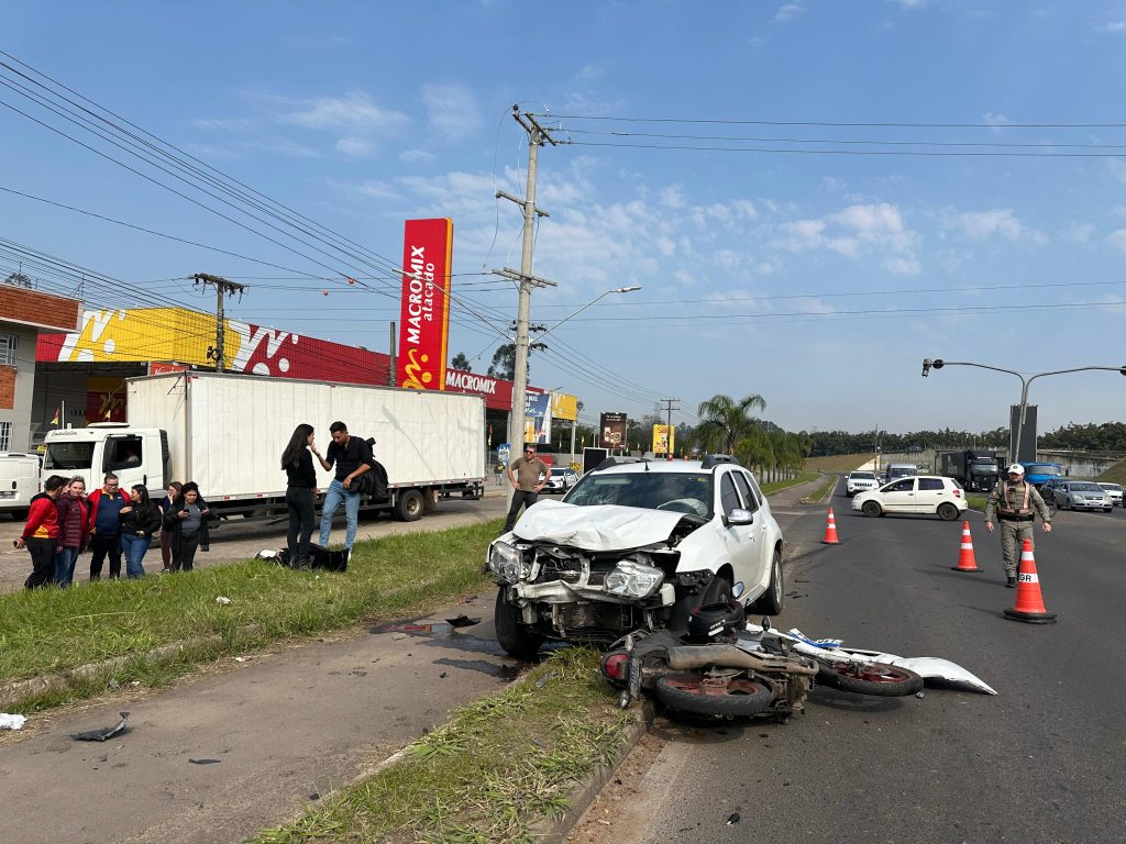 O acidente ocorreu no Km 1 da rodovia, nas proximidades da sinaleira de acesso à Rua Pinheiro Machado, no bairro Jardim do Prado, e envolveu o veículo Renault/Duster, que trafegava no sentido Taquara/Gramado, e a moto Honda/Twister, que fazia o retorno no sentido Gramado/Taquara.