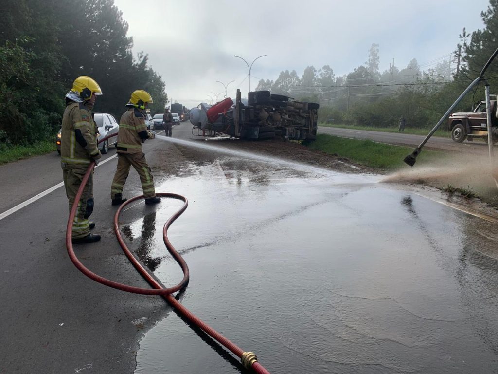 Bombeiros de Parobé atenderam ocorrência para fazer limpeza da pista (CBM/Parobé)