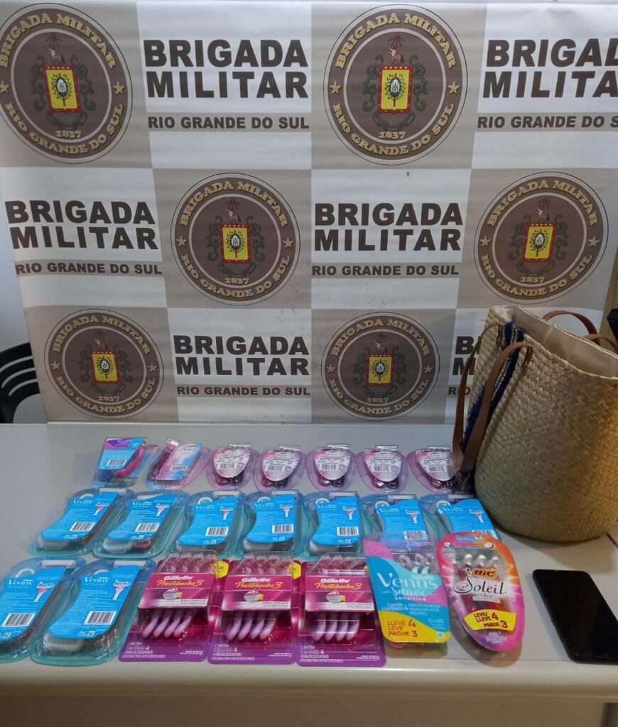 Chegando na farmácia, os policiais militares abordaram e identificaram a suspeita e, na revista pessoal, foram localizados 21 aparelhos de barbear.