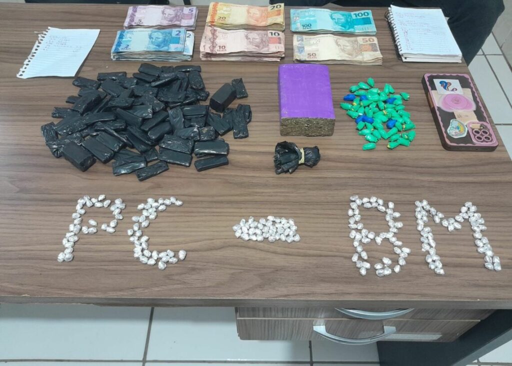 Segundo a polícia, foram apreendidas 506 gramas de maconha; 40 gramas de cocaína; 30 gramas de crack e R$ 2.292,00 em dinheiro. Outras duas pessoas foram encaminhadas para a delegacia como testemunhas do fato.