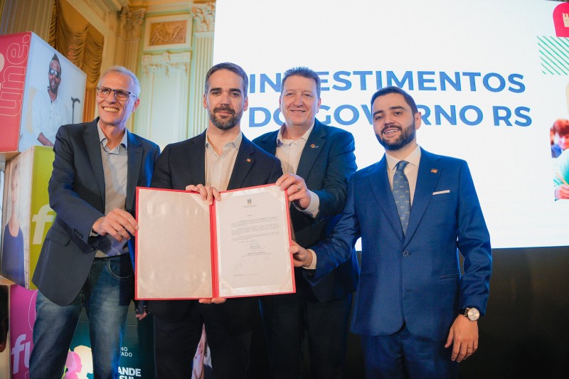 Carlos Mallmann, Eduardo Leite, Luciano Orsi (presidente da Famurs) e Gabriel Souza ressaltaram o sucesso da iniciativa Foto: Joel Vargas/Ascom GVG