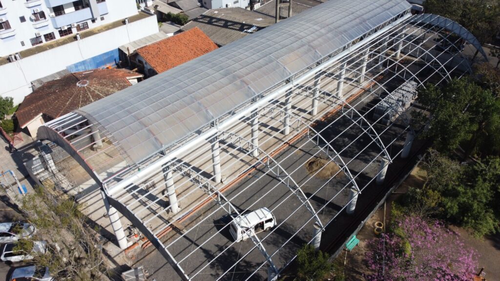Segundo a prefeitura de Parobé, o projeto de revitalização da Rua Coberta inclui a reforma dos mais de 800m² da atual cobertura, além da ampliação que está dobrando de tamanho da área coberta.