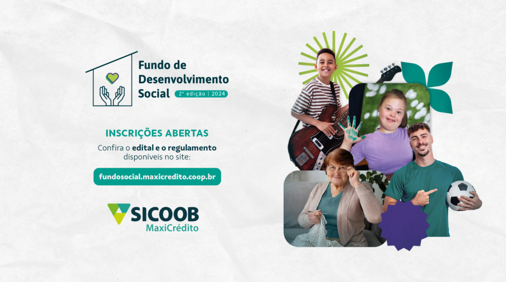 Já está aberto o prazo para inscrições de projetos para a segunda edição do Fundo de Desenvolvimento Social do Sicoob MaxiCrédito. O período vai de 1º de março a 19 de abril de 2024, exclusivamente através do site fundosocial.maxicredito.coop.br. Podem participar entidades sociais que atuam na região de abrangência do Sicoob MaxiCrédito em Santa Catarina e no Rio Grande do Sul.