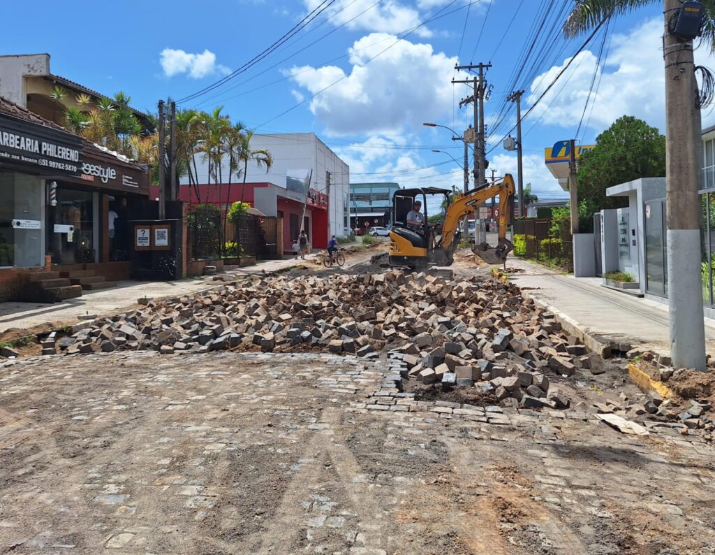 Nesta terça-feira (23), seguem sendo realizados os trabalhos de reassentamento de pedras regulares da Rua Pinheiro Machado, no Centro de Taquara. O local recebe uma nova base para a recolocação dos paralelepípedos na via, em uma área total que fica entre os cruzamentos com a Rua Júlio de Castilhos e a Avenida Sebastião Amoretti (ERS-020).