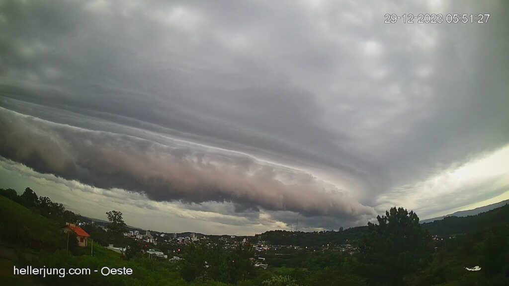 “Até às 10h54min, a Estação Meteorológica do Centro registrou 14.22 milímetros de água e a Estação Meteorológica do bairro Santa Rosa foi 12.95 milímetros. E as máximas rajadas de vento foram registradas às 05h59min no bairro Santa Rosa, de 40,3 Km/h, e às 6h23min no Centro, de 49,7 Km/h”, relata o diretor do observatório de Taquara.