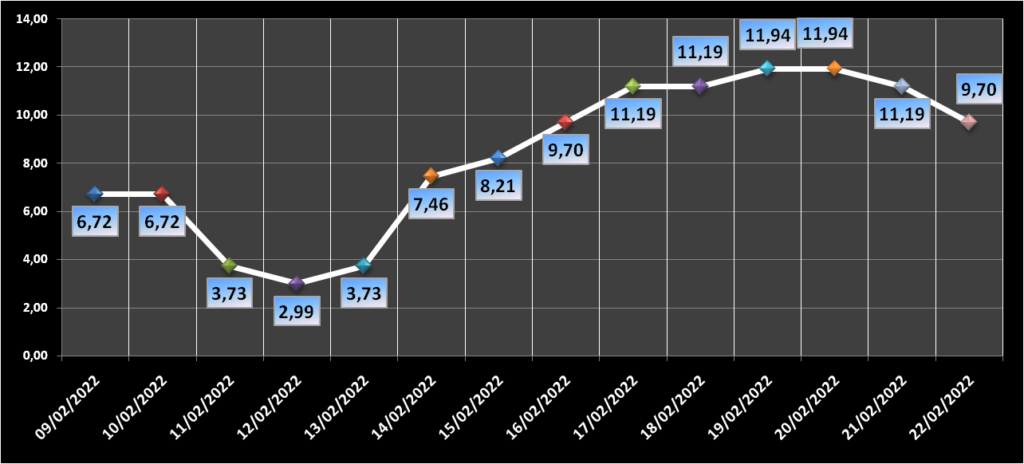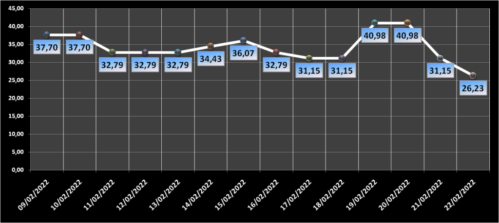 Gráfico da ocupação dos leitos clínicos nos últimos 14 dias.