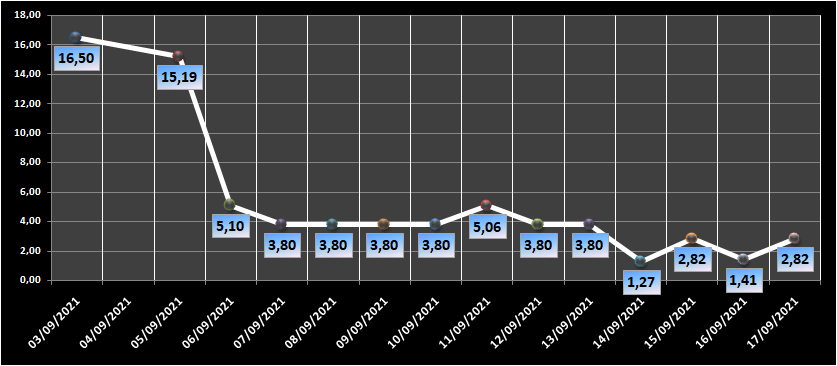 Gráfico da ocupação de UTIs nos últimos 14 dias.