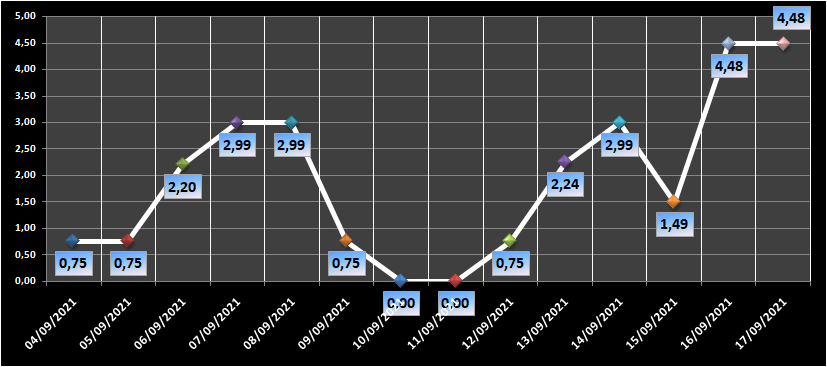 Gráfico da ocupação de leitos clínicos nos últimos 14 dias.