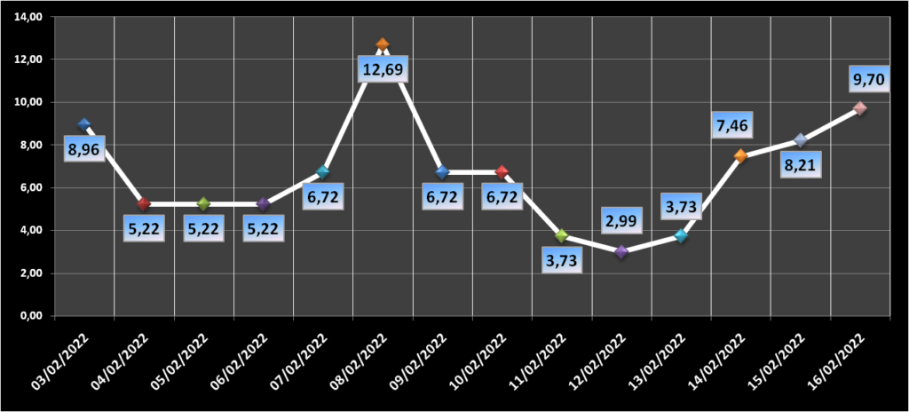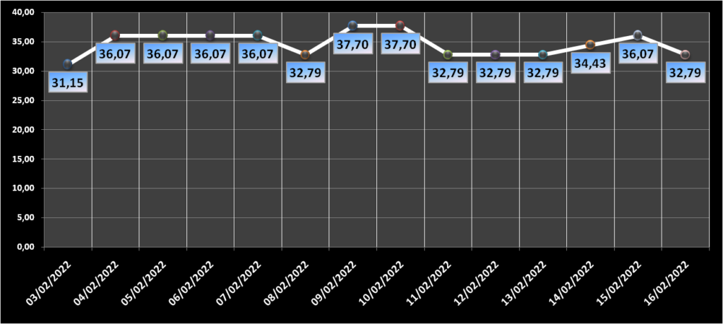 Gráfico da ocupação dos leitos clínicos nos últimos 14 dias.