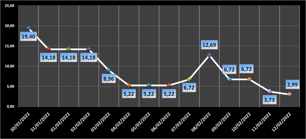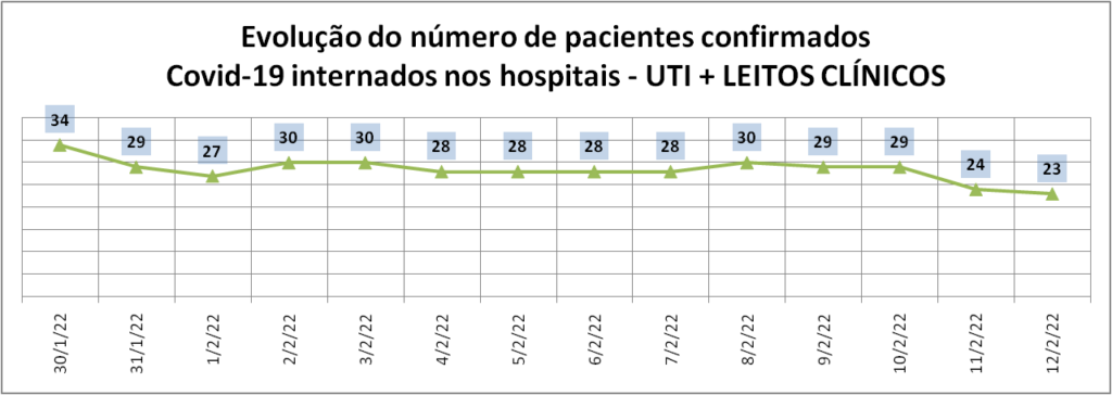 A ocupação de leitos clínicos destinados para o atendimento à infecção pelo novo coronavírus é de 2,99% – queda em relação aos 3,73% da sexta-feira (11/2). São quatro pacientes internados, todos confirmados para a Covid-19. Três estão em Parobé; e um em São Francisco de Paula. Trata-se da menor ocupação de leitos clínicos na região desde 6 de janeiro (veja histórico completo abaixo).