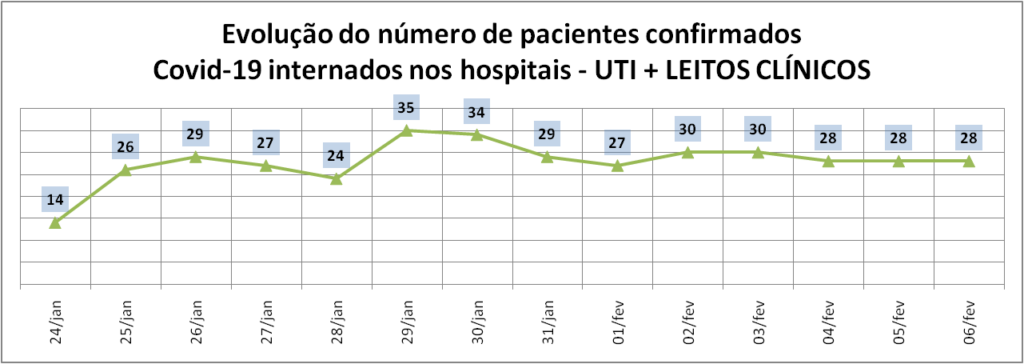 A ocupação de leitos clínicos destinados para o atendimento à infecção pelo novo coronavírus é de 5,22% – mesmo índice do sábado (5/2). São sete pacientes internados, todos confirmados para a Covid-19. Quatro estão em Parobé; um Riozinho; um em Rolante; e um em Três Coroas.