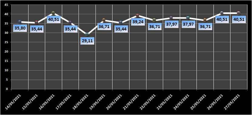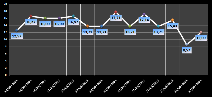 Gráfico da ocupação de leitos clínicos nos últimos 14 dias