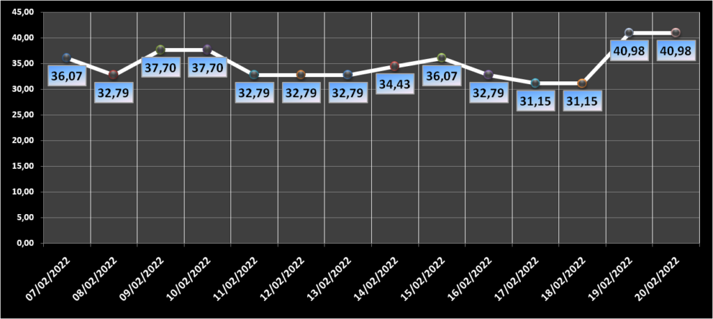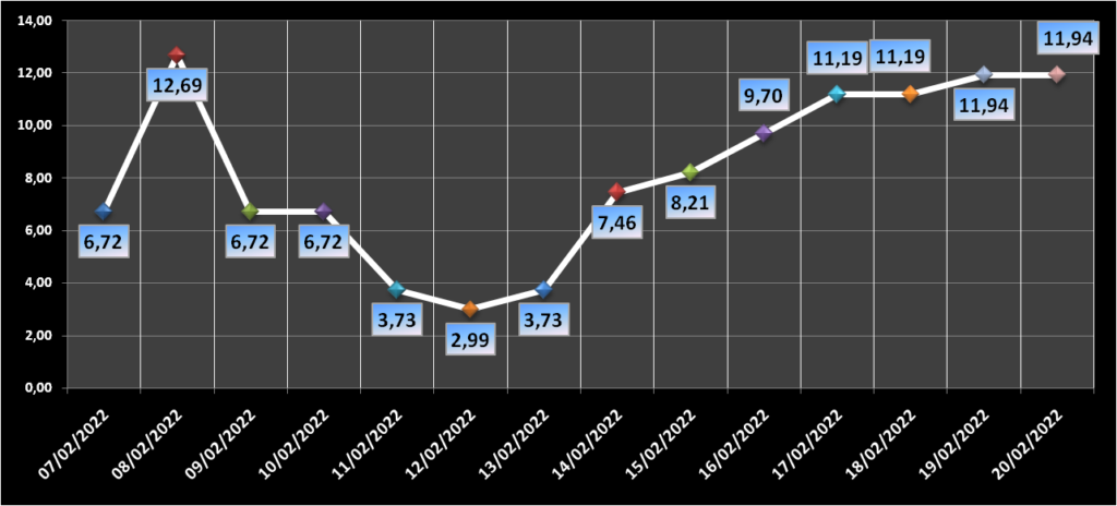 Gráfico da ocupação dos leitos clínicos nos últimos 14 dias.