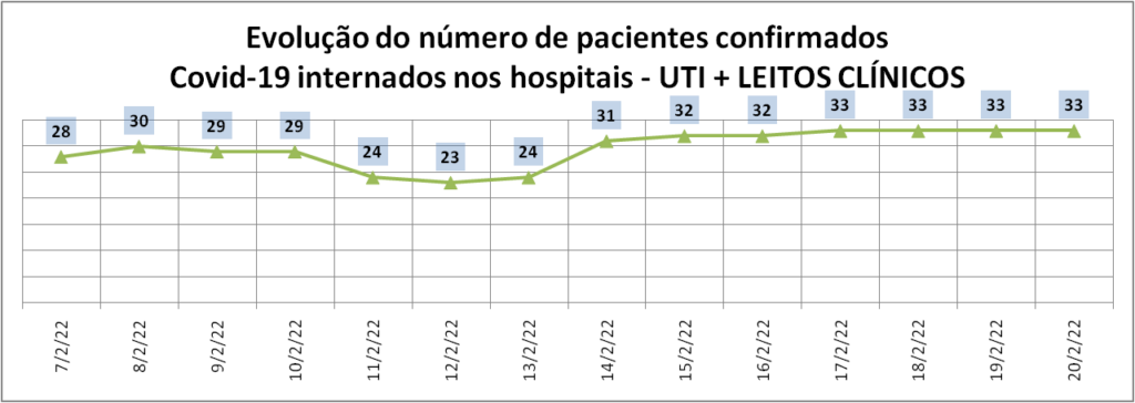 A ocupação de leitos clínicos destinados para o atendimento à infecção pelo novo coronavírus é de 11,94% – mesmo índice do sábado (19/2). São 16 pacientes internados, todos confirmados para a Covid-19. Nove estão em Parobé; dois em Três Coroas; dois em São Francisco de Paula; dois em Rolante; e um em Igrejinha.