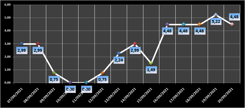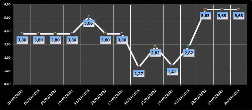 Gráfico da ocupação de UTIs nos últimos 14 dias.