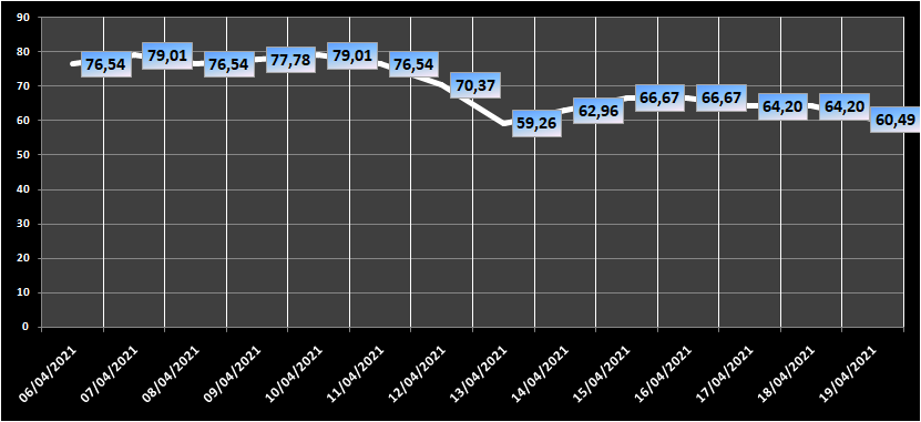 A Rádio Taquara divulga, diariamente, os dados da ocupação hospitalar na região, conforme as informações das casas de saúde repassadas ao governo do Estado. Nos relatórios desta segunda-feira (19/4), colhidos às 22h pela reportagem, a ocupação somada das três Unidades de Terapia Intensiva (UTIs), de Igrejinha, Parobé e Taquara, é de 60,49% – queda em relação aos 64,20% do domingo (18/4). São 49 pacientes internados, todos confirmados para a Covid-19.