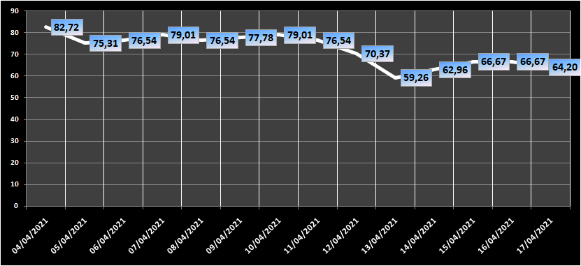 A Rádio Taquara divulga, diariamente, os dados da ocupação hospitalar na região, conforme as informações das casas de saúde repassadas ao governo do Estado. Nos relatórios deste sábado (17/4), colhidos às 22h pela reportagem, a ocupação somada das três Unidades de Terapia Intensiva (UTIs), de Igrejinha, Parobé e Taquara, é de 64,20% – queda em relação aos 66,67% da sexta-feira (16/4). São 52 pacientes internados, sendo 46 confirmados para Covid-19 e seis suspeitos.