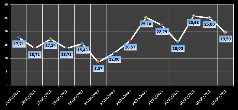 Gráfico da ocupação de leitos clínicos nos últimos 14 dias