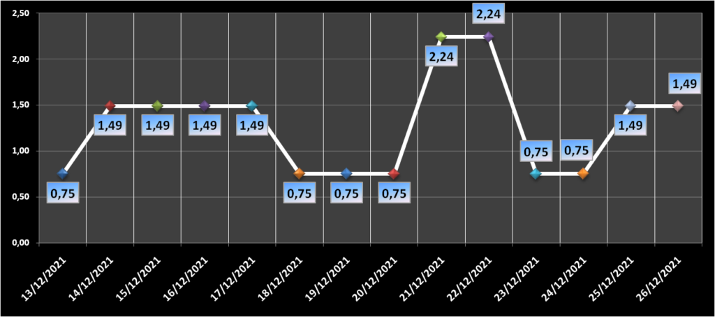 Gráfico da ocupação dos leitos clínicos nos últimos 14 dias.