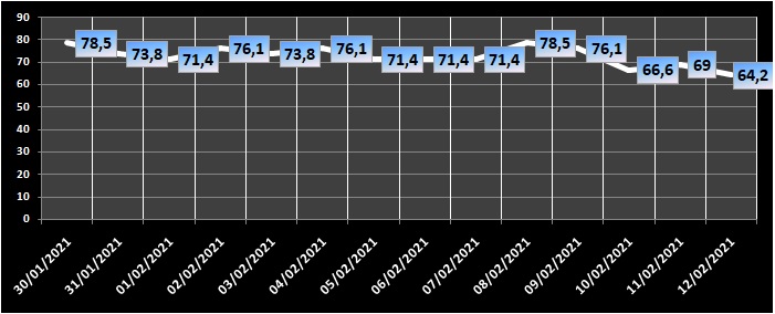 A Rádio Taquara divulga, diariamente, os dados da ocupação hospitalar na região, conforme as informações das casas de saúde repassadas ao governo do Estado. Nos relatórios desta sexta-feira (12/2), colhidos às 22 horas pela reportagem, a ocupação somada das duas Unidades de Terapia Intensiva (UTIs), de Parobé e Taquara, é de 64,2% – queda em relação aos 69% da quinta-feira (11/2). São 27 pacientes internados, sendo 24 confirmados para Covid-19 e três para outras doenças.