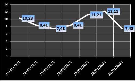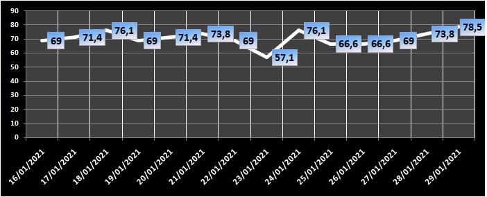 A Rádio Taquara divulga, diariamente, os dados da ocupação hospitalar na região, conforme as informações das casas de saúde repassadas ao governo do Estado. Nos relatórios desta sexta-feira (29/1), colhidos às 22 horas pela reportagem, a ocupação somada das duas Unidades de Terapia Intensiva (UTIs), de Parobé e Taquara, é de 78,5% – aumento em relação aos 73,8% da quinta-feira (28/1). São 33 pacientes internados, sendo 25 confirmados para Covid-19, dois suspeitos para Covid-19 ou Síndrome Respiratória Aguda Grave (SRAG) e seis para outras doenças.
