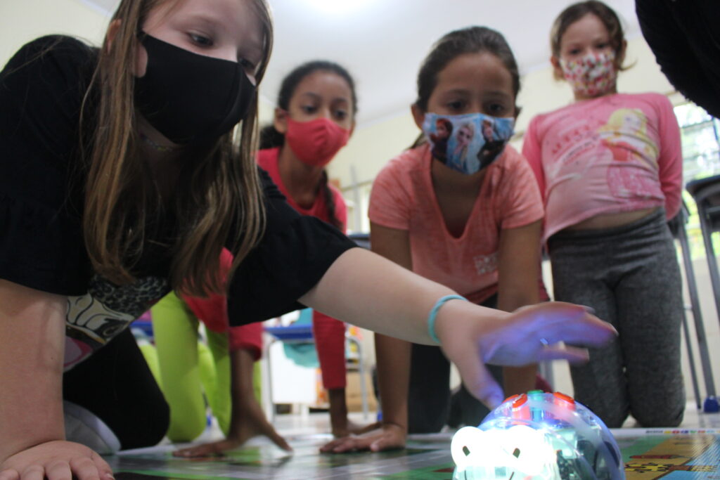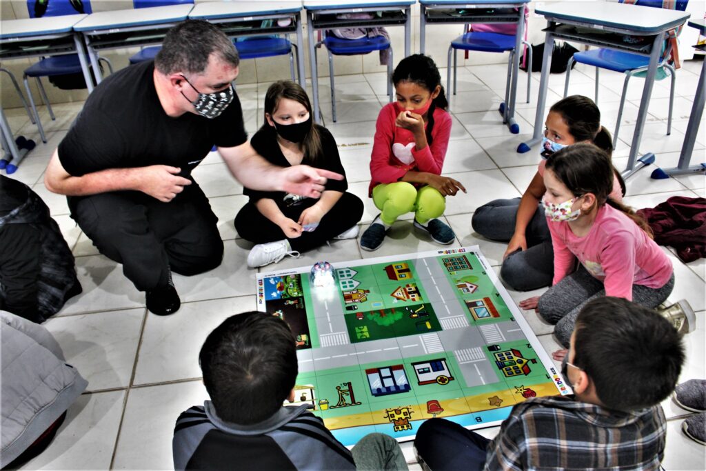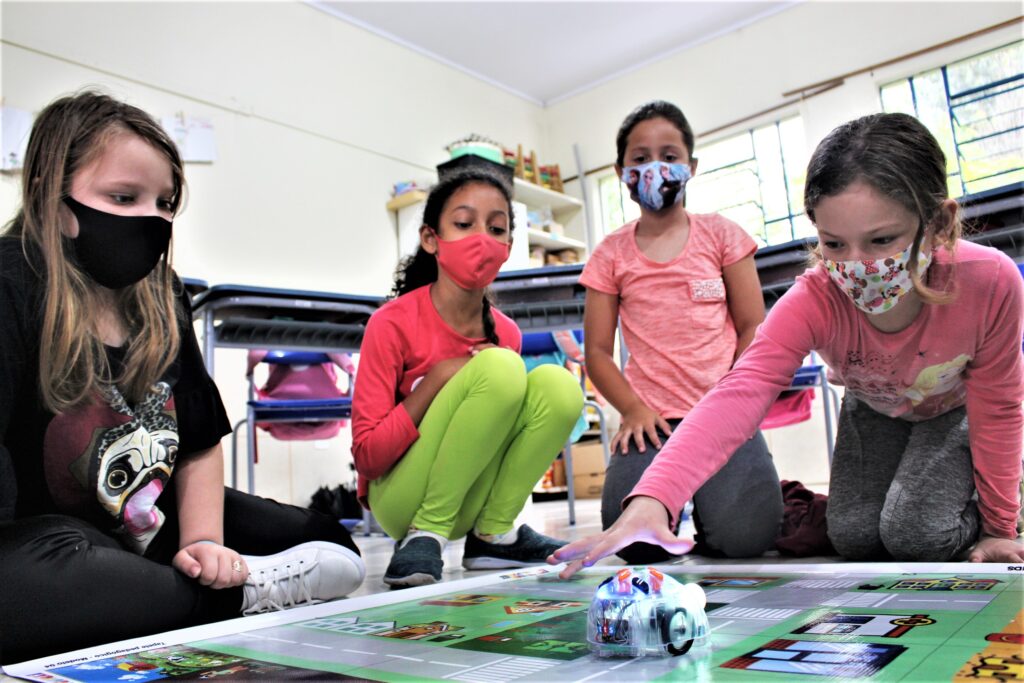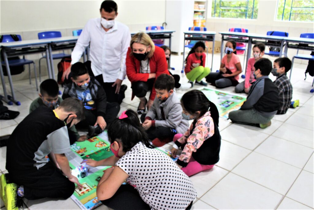 Na tarde de terça-feira (28), o prefeito Diego Picucha e a secretária de Educação, Joana D’Arc Witmann, acompanharam as atividades em algumas escolas da cidade. Na EMEF João Muck os estudantes de 2º ano se divertiram e aprenderam com um pequeno rato robótico, que é programado por eles com comandos básicos para se deslocar por um pequeno mapa que simula uma cidade.