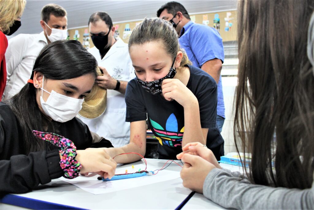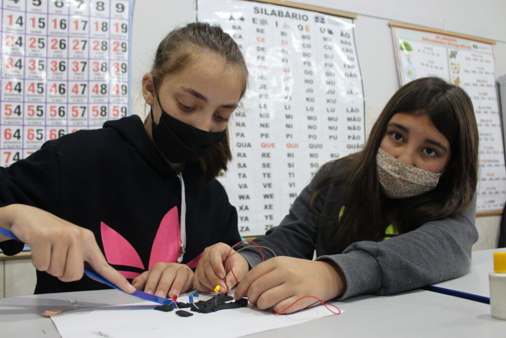 Já na EMEF Idalino Pedro da Silva os alunos aprenderam noções básicas de elétrica, com minhocas feitas de massinha e conectadas em pequenos LEDs.