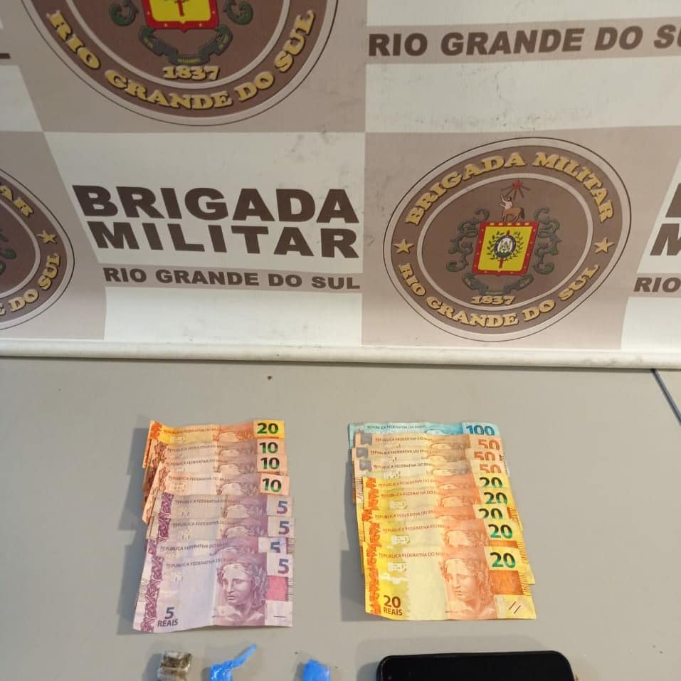 Durante abordagem em um ponto conhecido pela prática de tráfico, uma guarnição abordou o casal, que possuía 24 pedras de crack, uma porção de maconha, um telefone celular e aproximadamente R$ 1,7 mil em dinheiro. Também estavam com uma balança de precisão e material específico para a comercialização da droga.