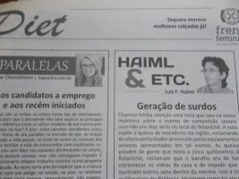 Mas houve um segundo início, a imprensa impressa. Comecei a escrever para espaços dos leitores, principalmente no NH e no Panorama (Cx. Postal 59). Surge, então, o “Hoje”, periódico do Eduardo Vaz dos Santos, no qual ganhei espaço livre de página só minha.