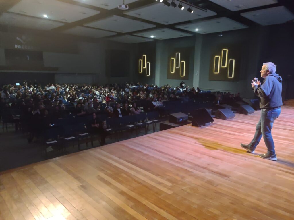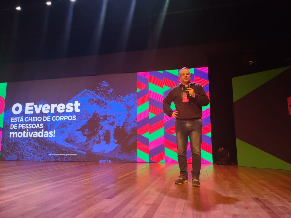 Durante a palestra, Flavio falou sobre sua experiência no mundo das startups, de como é importante testar ideias e relacionou os principais erros cometidos por quem está começando a empreender.