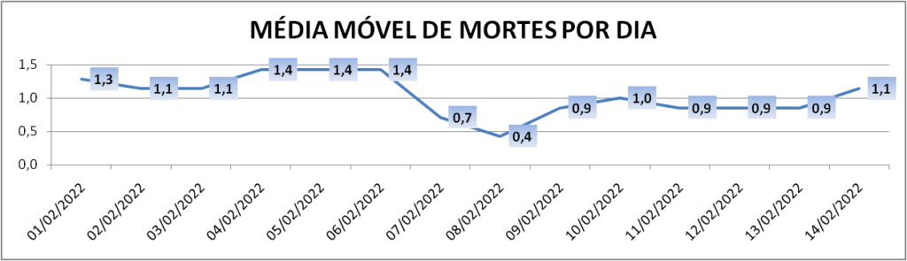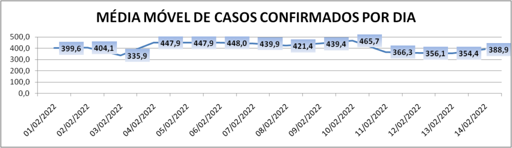 A média móvel de novos casos na região é de 388,9 por dia. Com relação ao índice de 14 dias atrás a média móvel apresenta queda de 3%* – o que indica tendência de estabilidade na pandemia. Este é o maior número de casos registrados em apenas um levantamento da Covid-19 desde o início da pandemia. No entanto, é importante registrar que a soma contém os dados represados do final de semana e, ainda, de Parobé, que não havia divulgado o levantamento na sexta-feira passada (11/2).