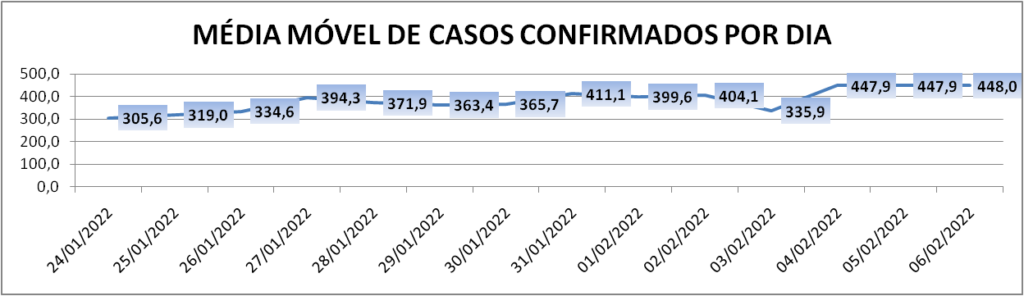 A média móvel de novos casos na região é de 448 por dia – a maior desde o início da pandemia. Com relação ao índice de 14 dias atrás a média móvel apresenta crescimento de 47%*.