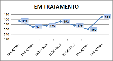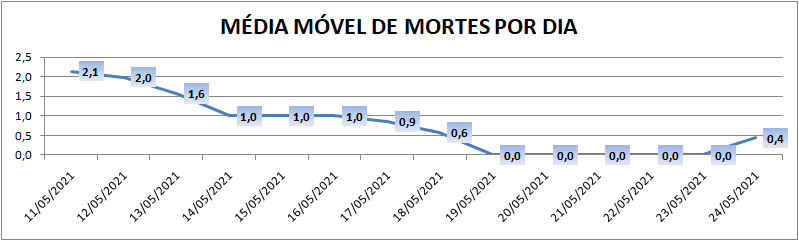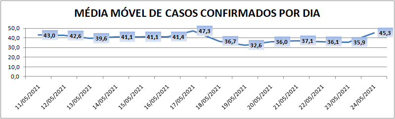 A média móvel de novos casos na região é de 45,3 por dia. Na comparação com o dado de sete dias atrás, a média móvel apresenta crescimento de 23%. Já com relação ao índice de 14 dias atrás, o valor é de 5% de crescimento no registro médio diário de casos.
